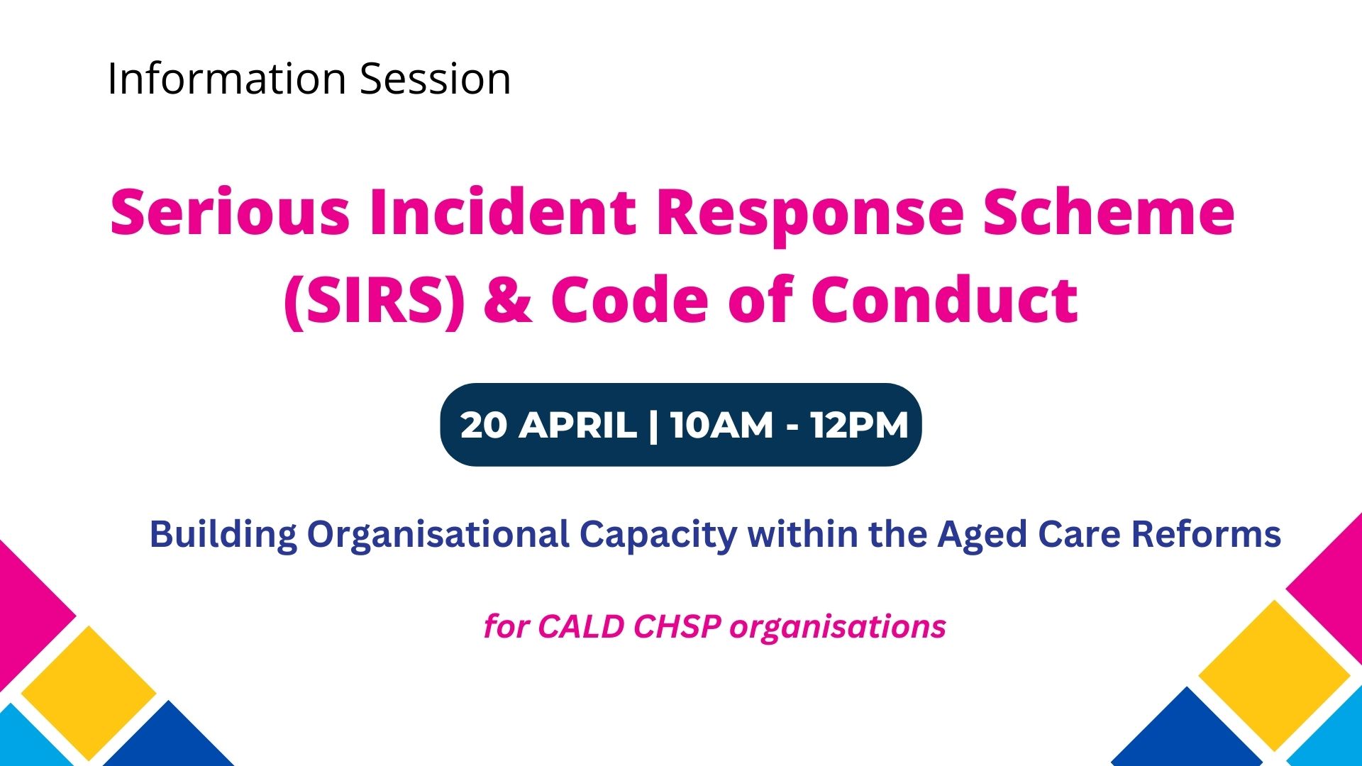 What: BUILDING ORGANISATIONAL CAPACITY WITHIN THE AGED CARE REFORMS information session